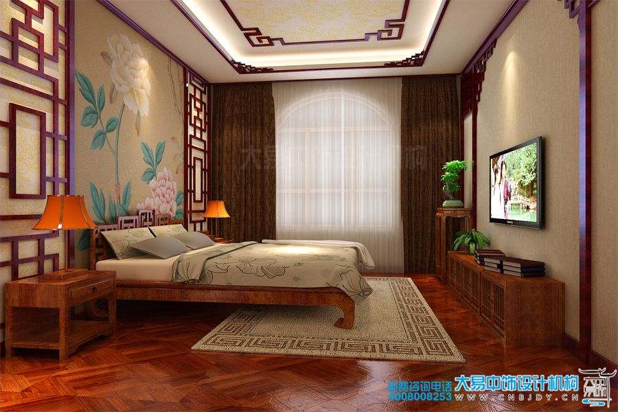 一樓客廳裝飾是會客、娛樂、家庭成員聚談的主要場所,所以設(shè)計的古雅而莊重