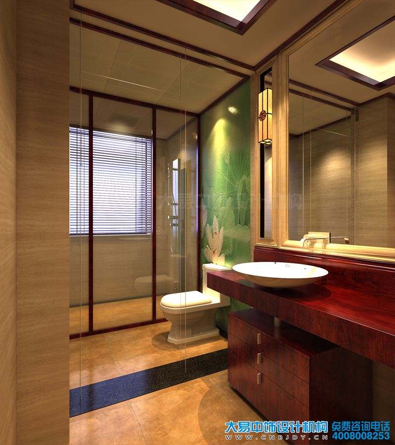 一樓衛(wèi)生間很注重視覺與質(zhì)感的塑造,除了干凈舒適之外,也別具中式雅韻。