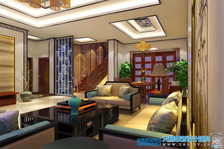 山東德州350平米別墅設(shè)計新中式風(fēng)格裝修效果圖