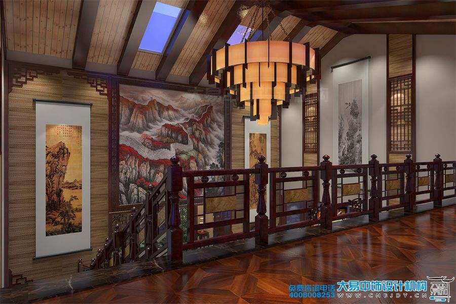 別墅門廳時尚美觀,中式古典畫的裝飾,表現出極致高雅的東方風韻