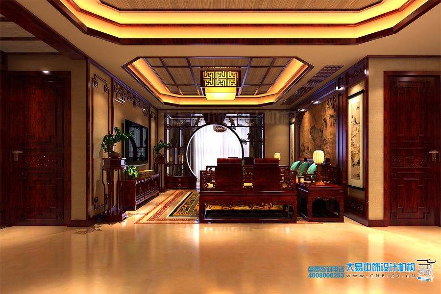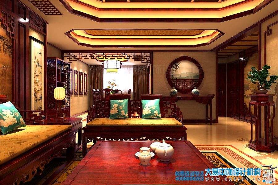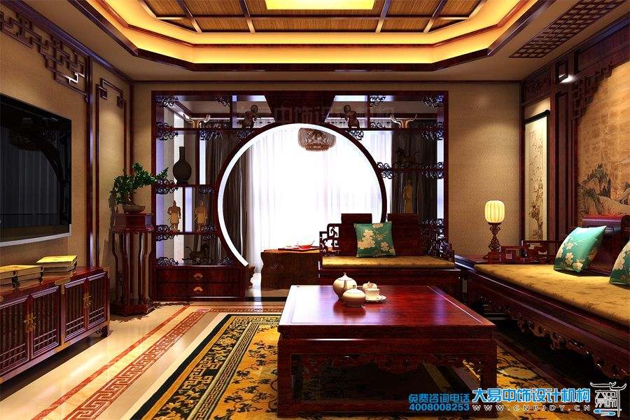 客廳中式設(shè)計古樸、大氣,讓空間看起來清亮、寬敞