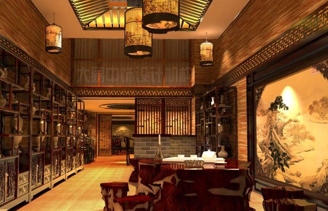 大連簡約中式風(fēng)格茶城裝修效果圖