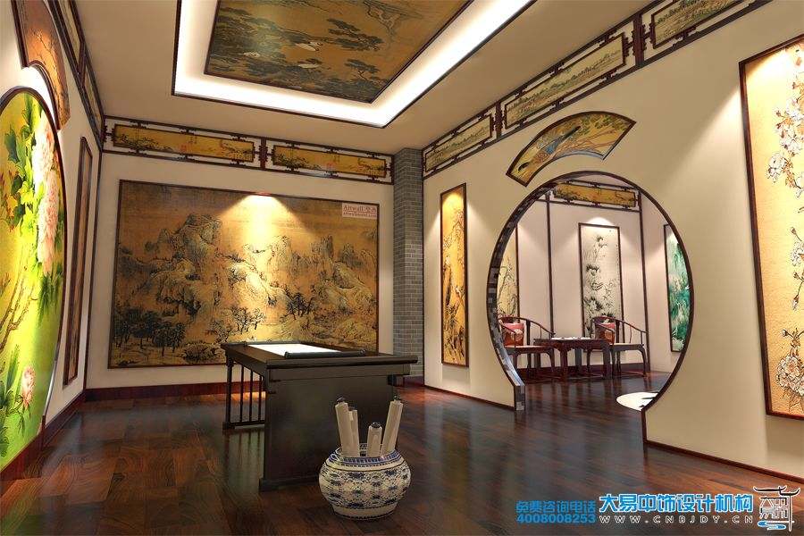案例賞析:石家莊中式風格木版畫展廳設計效果圖,不僅僅是展示中式藝術的平臺,更是對傳統儒雅文化氛圍的一種烘托。這種“從容、內斂”而極具精工吊飾的傳統技法,正式大易中飾設計師汲取了復古裝飾效果中對形神特征的凝練,將儒家文化中那種厚德與道家文化中的空靈悠遠相互糅合在一起。使得中式展廳裝修的更加端莊、典雅,穩重大氣。不僅如此,近距離體驗展廳的藝術之美,還能親身感受到現代人所尊崇的休閑與舒適、放松的理念貫徹其中,將中式美韻體現的更為淋漓盡致。