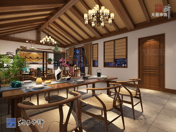 這是出自魏晉大文學家陶淵明的詩句.本民宿中式裝修設計案例就坐落在像詩一般的意境當中.
