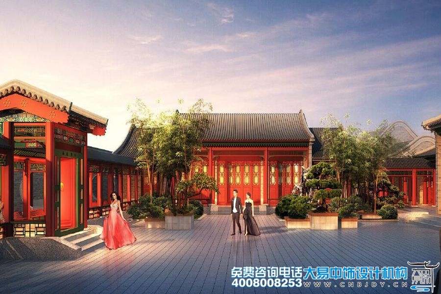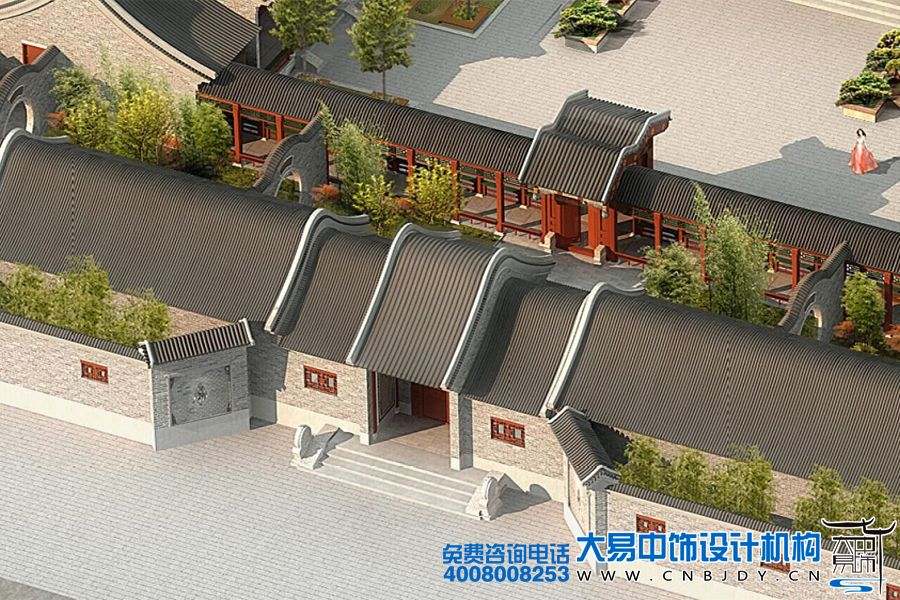 本套四合院中式設計裝修案例中是一個古典中式風格四合院設計規劃效果圖,因為四合院屬于我國古老、傳統的文化象征。所以,大易中飾設計師在規劃設計整個四合院建筑的時候,切合了原始的四合院構造造型以及大量的復古元素,加之與四周自然環境的糅合,更是應用到了古典廊柱、雕刻、水榭、亭臺設計,山借水景,水借山形,把深沉、濃郁的古典成分與現代裝飾技法協調一體,讓人有種步入仙境般的神奇景象,最具美感的藝術魅力,更能凸顯古典中式風格的文化深度。