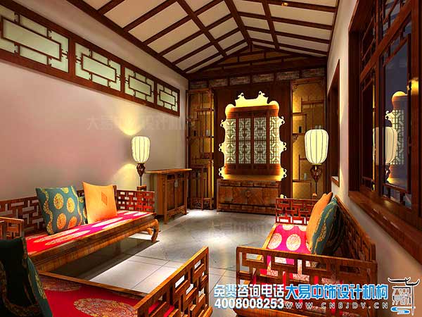 客廳四合院設計雖沒有傳統(tǒng)風格那么繁瑣奢華,但它卻端莊清雅、富于藝術韻律之美