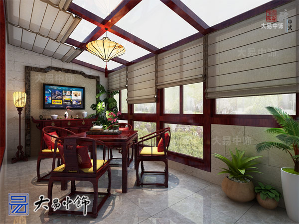 北邊的庭院面積較小,在房屋北側,光照較差,因此做了陽光房封閉,改為小餐廳使用,方便家人的簡單用餐。