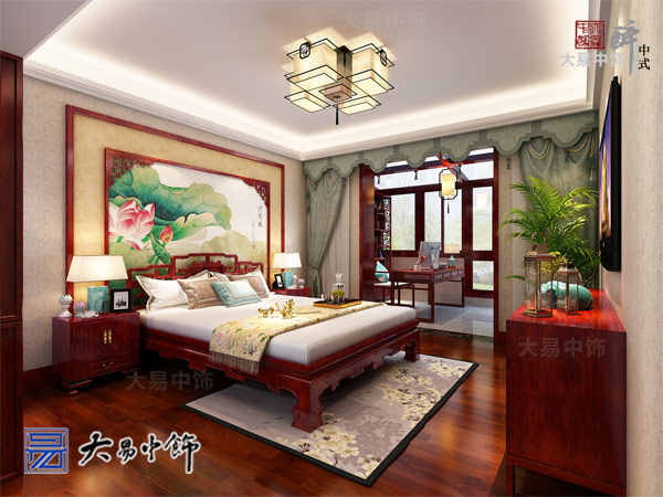 女兒房未做復雜的設計造型,床頭采用荷花作為中式設計元素,更加符合小女主的居住身份。