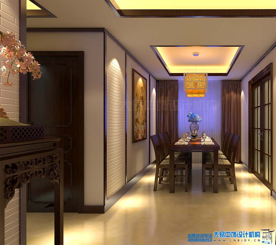 客廳與餐廳之間有一過道,入門處懸一幅畫作,素雅簡約。過道吊頂與餐廳、客廳保持一致,整體搭配自然和諧,大量的留白藝術手法,于無形中增強空間裝飾意象的感染力,更具文雅內涵。
