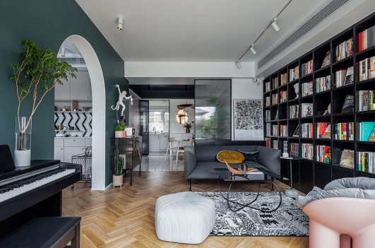看書是一個很好的習慣,雖然說現在電子產品越來越盛行,但是有的人還是喜歡在安靜的時候,拿一本自己喜歡的書,泡上一壺茶水,沉迷于書本的內容中。如果你注重閱讀,也可以選擇放棄沙發、茶幾等配置,直接將客廳設計成閱讀空間。讓閱讀成為生活中的一部分,這樣的設計也能幫助培養良好的閱讀習慣。